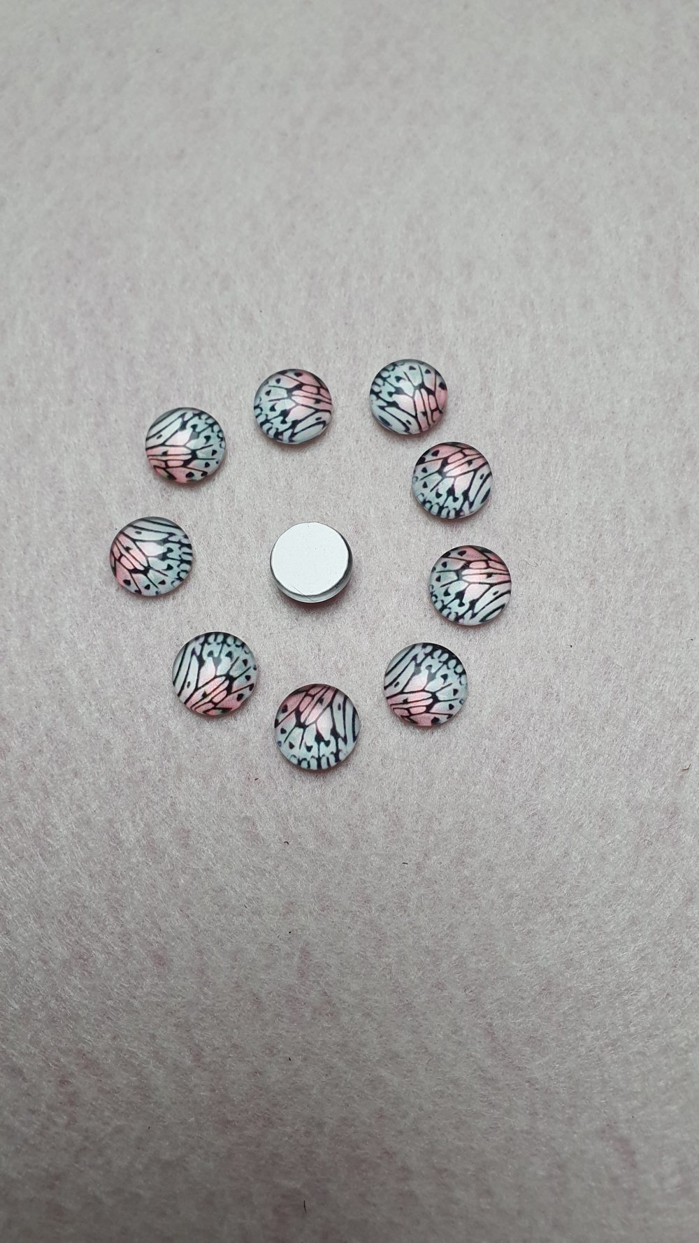 2 cabochon aile papillon mauve noir 12mm verre épaisseur 4.5mm