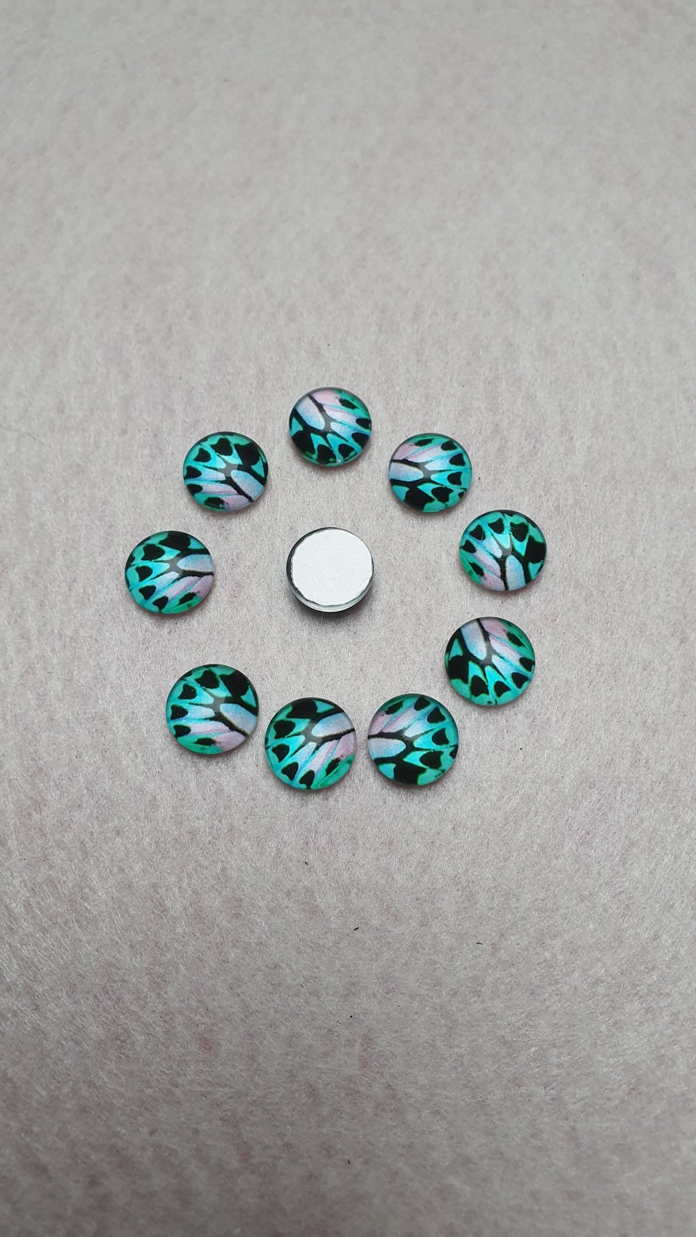 2 cabochon aile papillon orange blanc 12mm verre épaisseur 4.5mm
