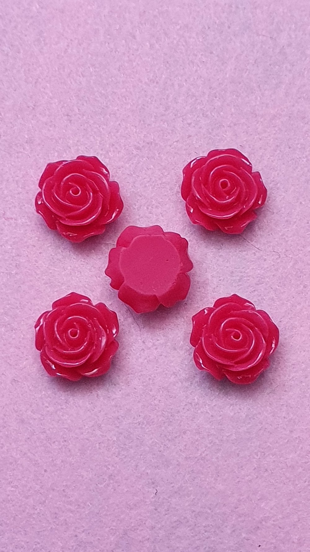 2 cabochons fleur fuchsia foncé 14mm résine épaisseur 7.8mm