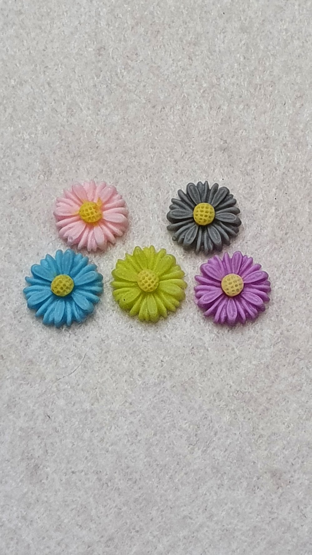 2 cabochons fleur vert 12.5mm résine épaisseur 3.3mm