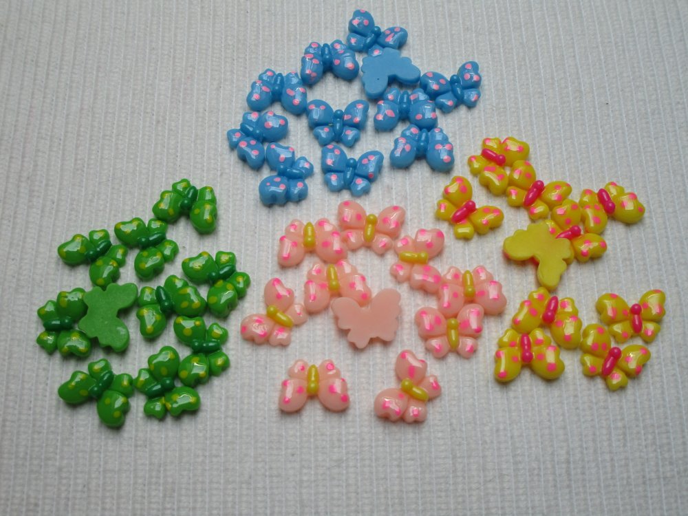 2 cabochons papillon vert à pois 13.7x10.6mm résine épaisseur 3.9mm
