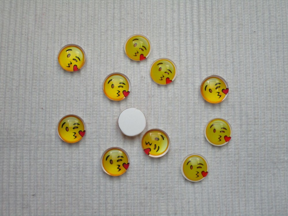 2 cabochons smiley n°6 à coller en verre 12x4mm Plusieurs smiley dans la boutique