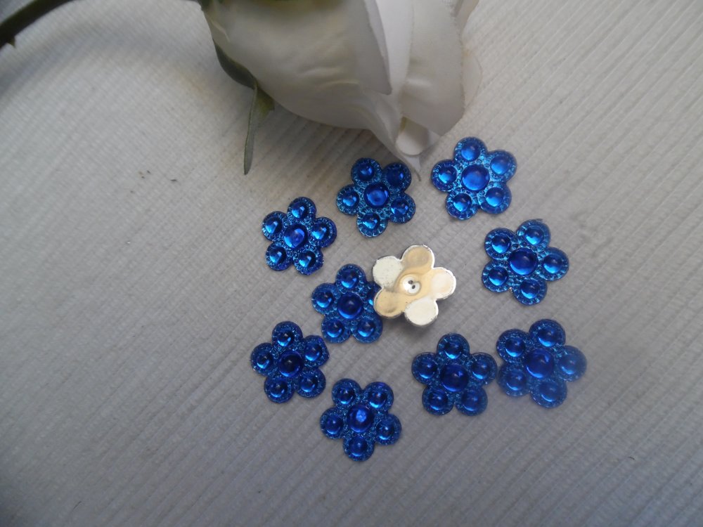 3 cabochons fleur bleu roi 17.6mm acrylique épaisseur 4mm. Plusieurs couleurs dans la boutique