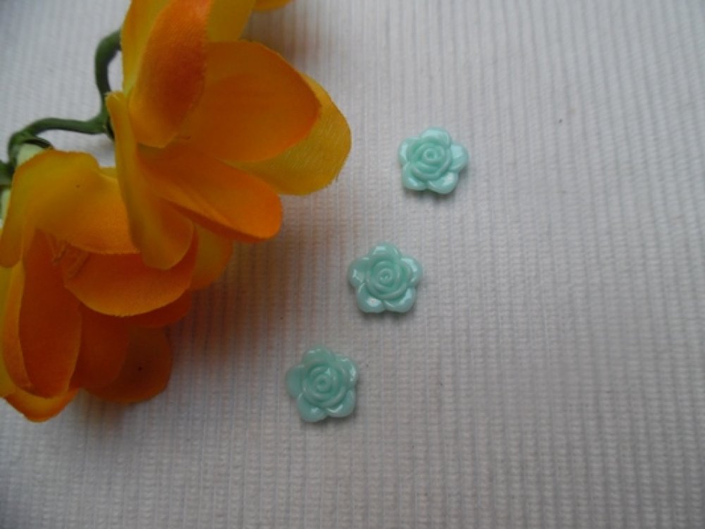 3 cabochons fleur verte claire nacrée 14.3mm résine épaisseur 5.2mm. Plusieurs couleurs dans la boutique