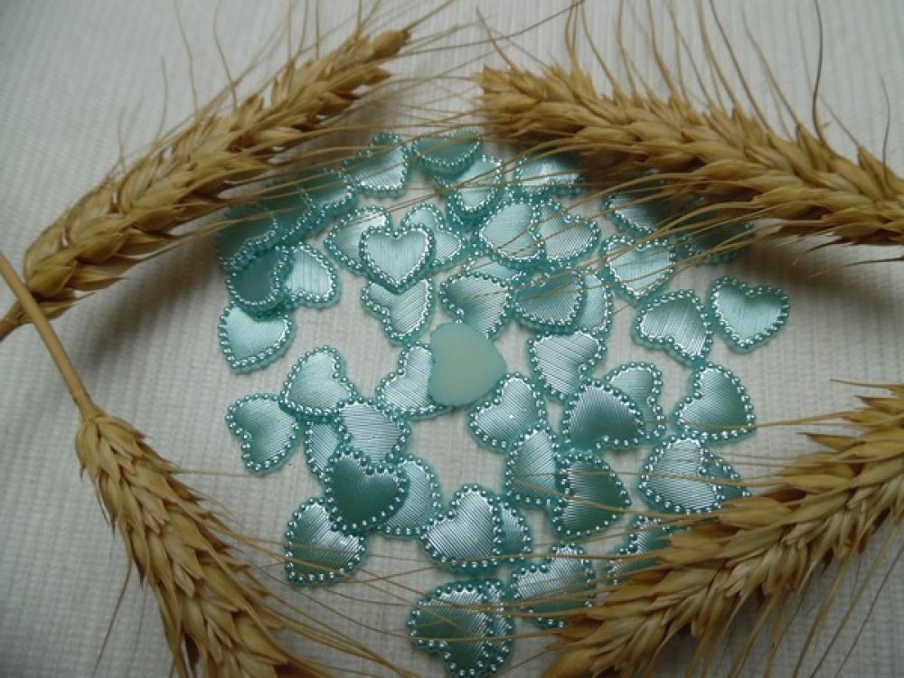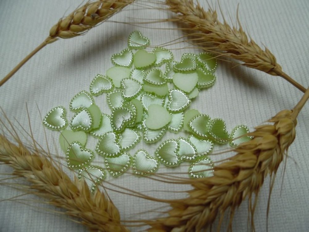 5 cabochons coeur perlé vert résine 14.3x13.5 épaisseur 2mm