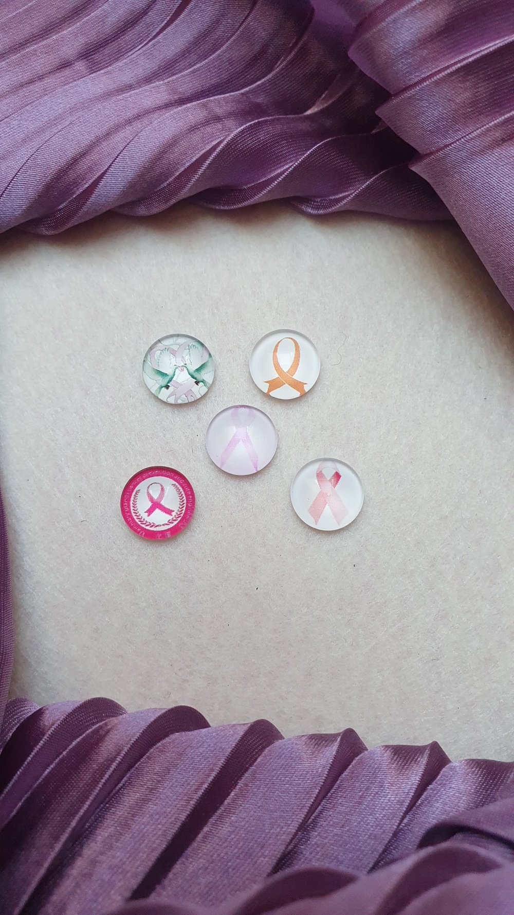 5 cabochons mixte ruban cancer 12mm verre épaisseur 4mm