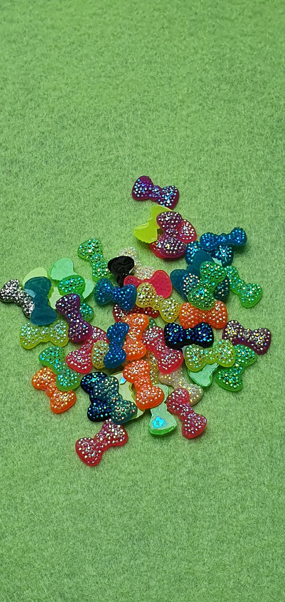 5 cabochons noeud strass mixte reflet 12.4x7.8mm résine épaisseur 2.2mm. Plusieurs couleurs dans la boutique