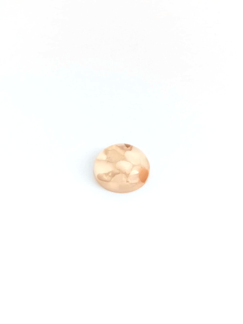 Cabochon rond blanc avec éclats de coquillage, en résine.