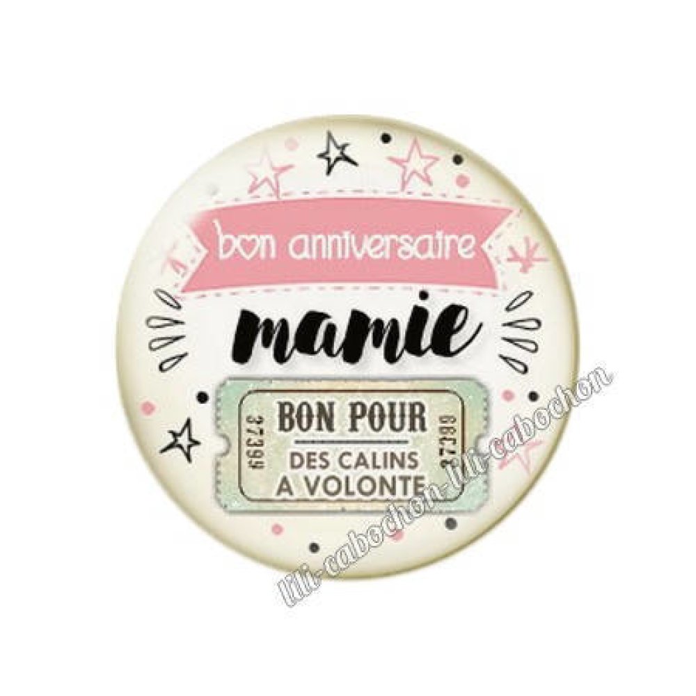 Cabochon en résine époxy 25 mm thème joyeux anniversaire mamie 25