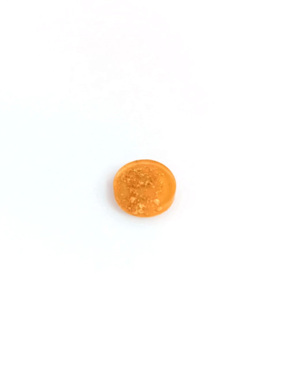 Cabochon rond plat jaune avec feuille d'or en résine. Dimensions : 14mm, épaisseur 3mm - A l'unité ou en lot de 10 pièces