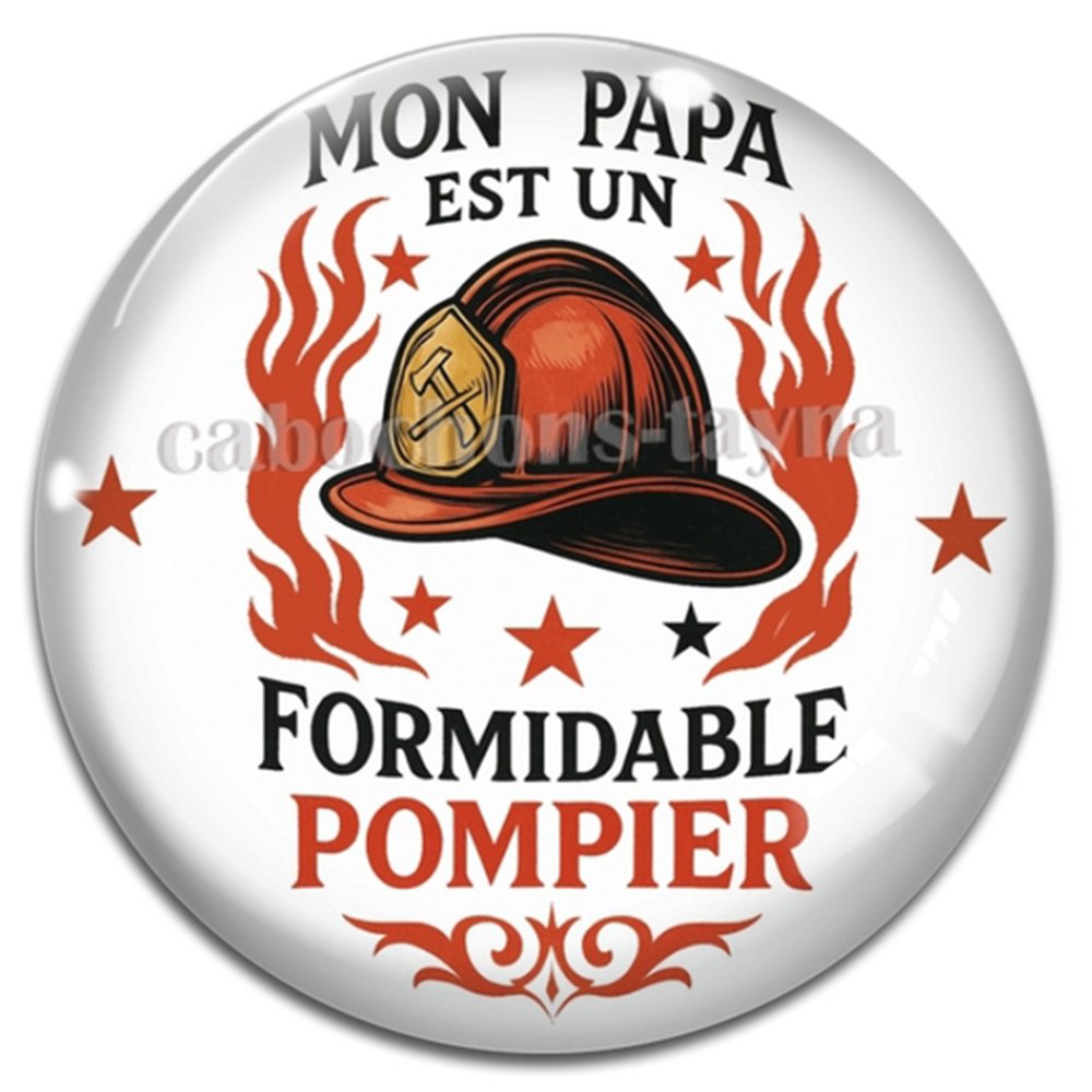 Cabochon mon papa est un formidable pompier, cabochon résine, verre rond différente taille