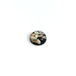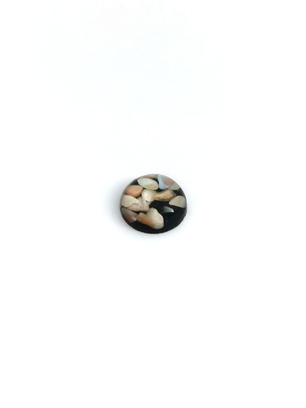 Cabochon rond noir avec éclats de coquillage, en résine.