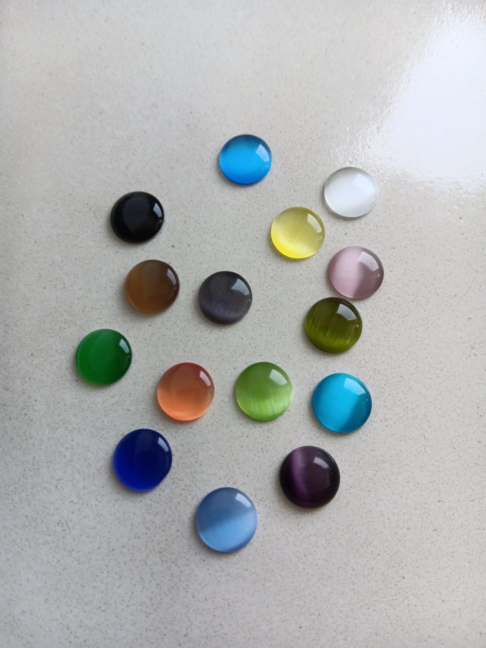 Cabochon oeil de chat gris en verre. Dimensions : 12mm, épaisseur 3mm - A l'unité ou en lot de 10 pièces