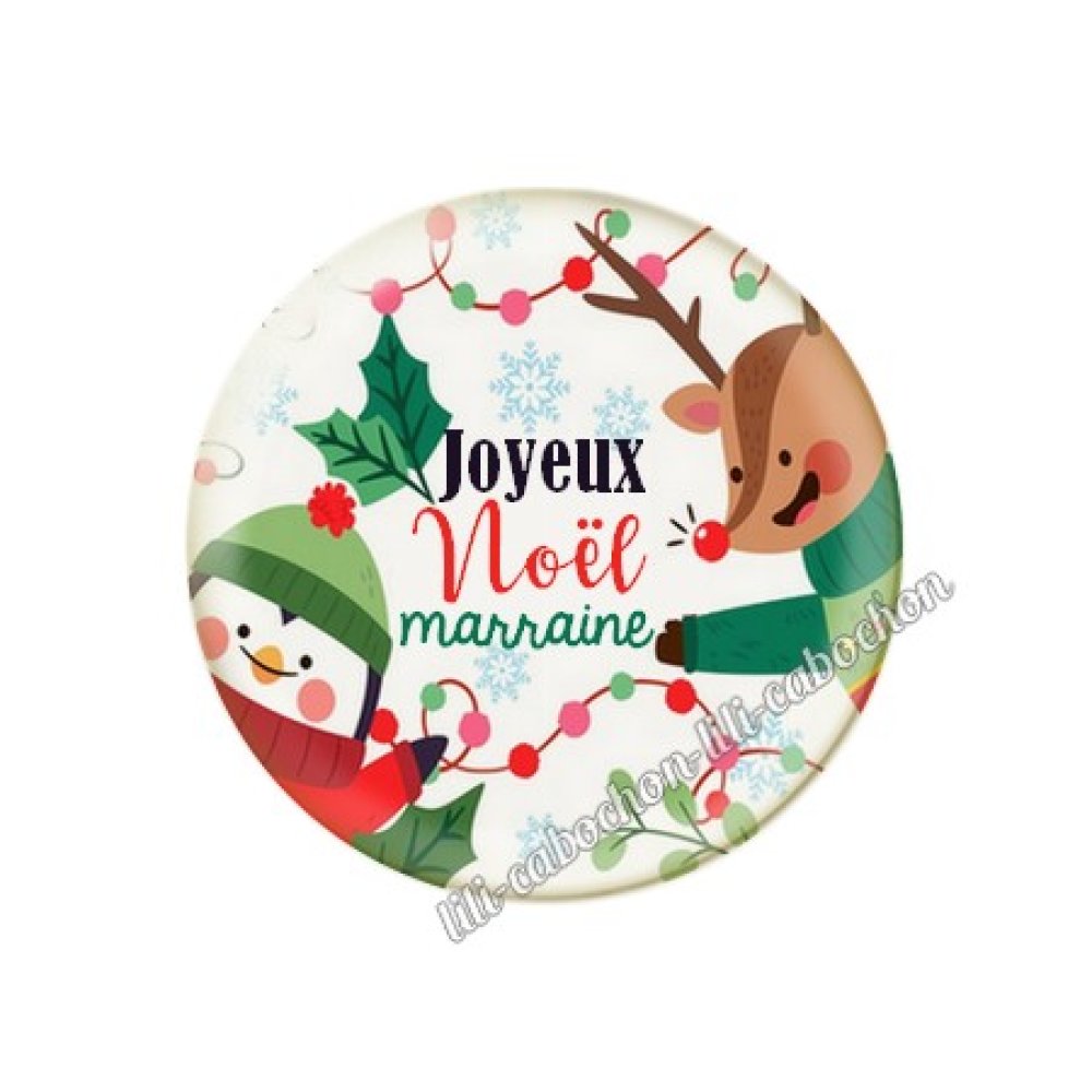 Cabochon résine à coller 25 mm joyeux noël marraine no53