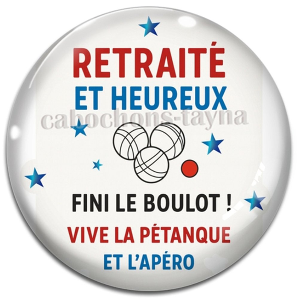 Cabochon retraité heureux fini le boulot vive la pétanque et l'apéro
