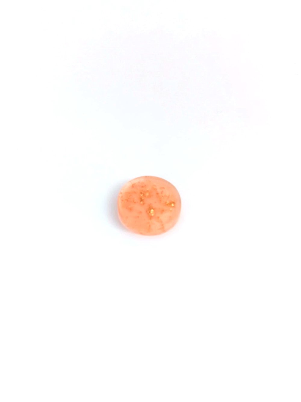 Cabochon rond plat rose, avec feuille d'or, en résine.