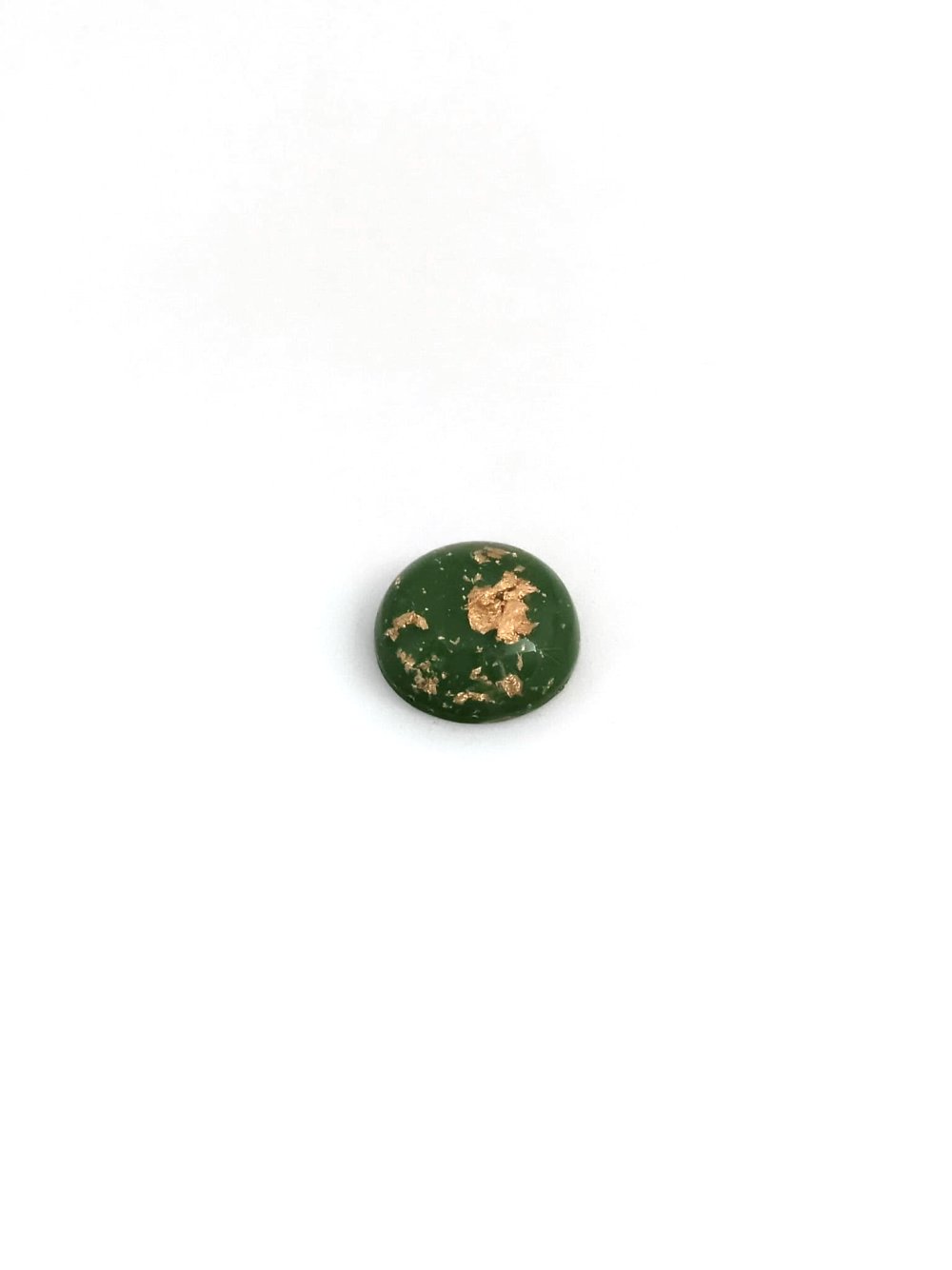 Cabochon dôme rond vert, avec feuille d'or, en résine.