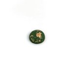 Cabochon dôme rond vert avec feuille d'or en résine. Dimensions : 14mm, épaisseur 6mm - A l'unité ou en lot de 10 pièces