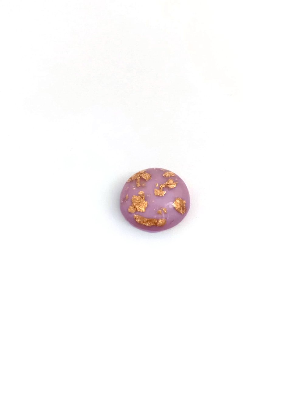 Cabochon dôme rond violet, avec feuille d'or, en résine.