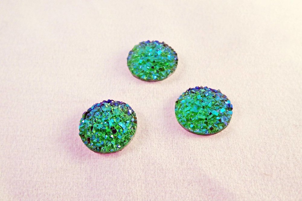 Lot de 3 Cabochons en Résine à Strass Paillettes de 12mm de couleur Vert.