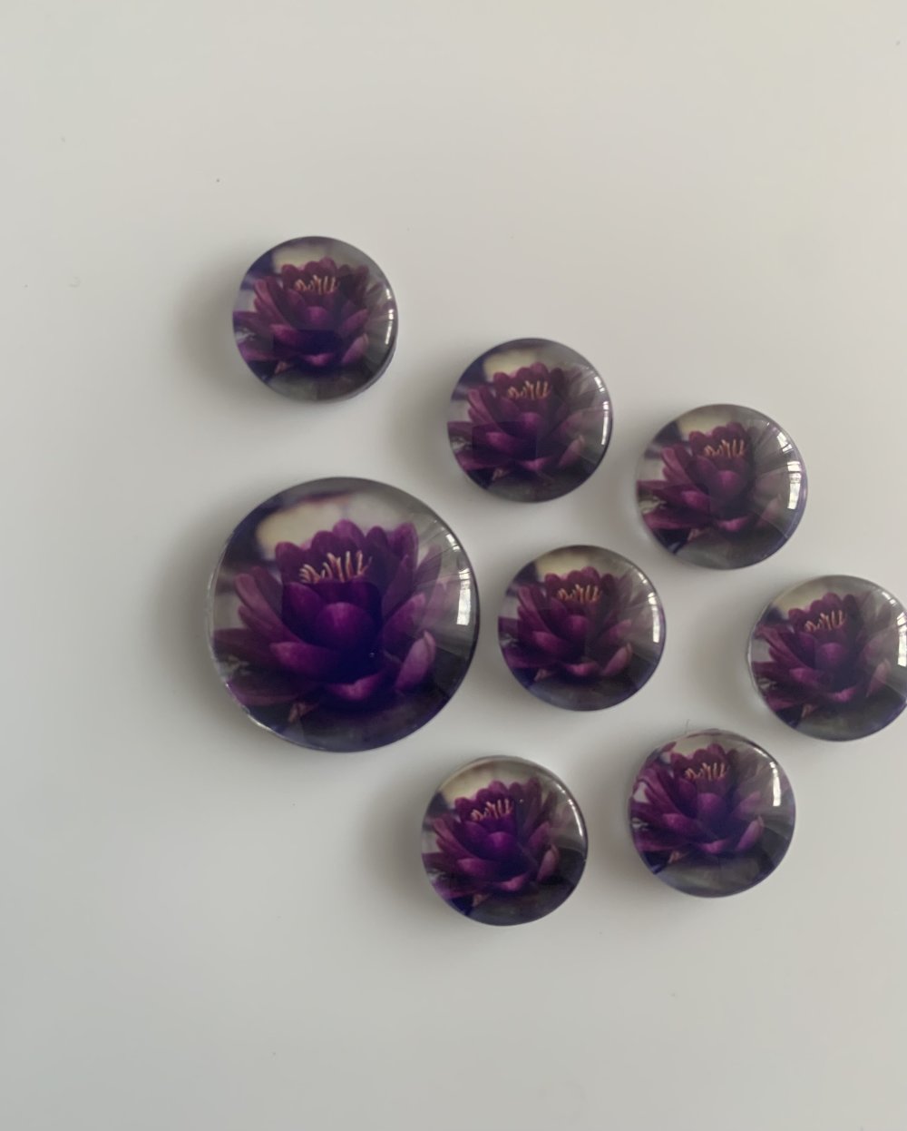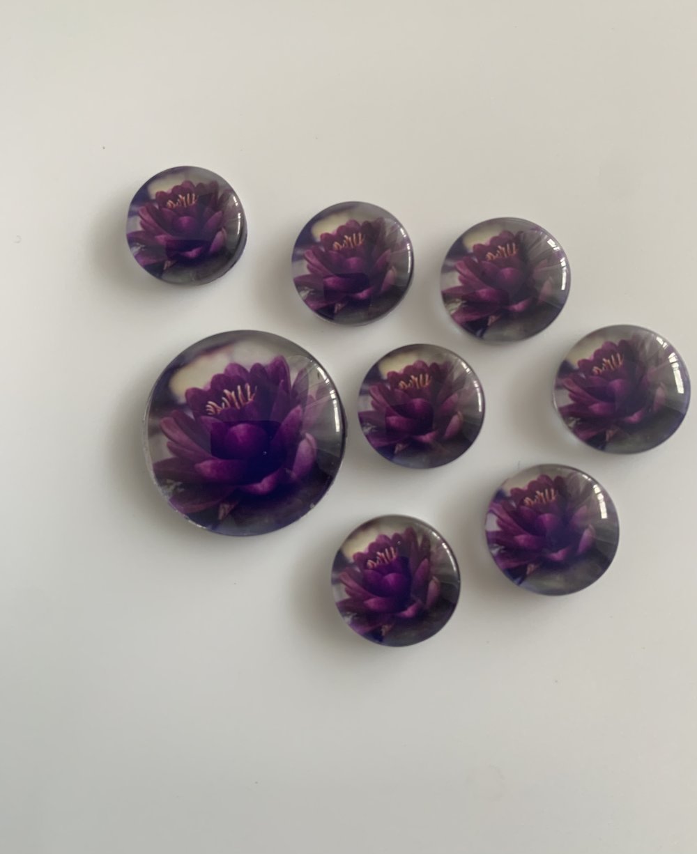Lot de cabochons en verre ,1 de 20 mm , et 7 de 12 mm
