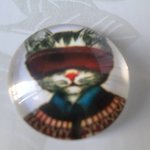 x 1 camée/cabochon rond en verre motif chaton rigolo