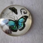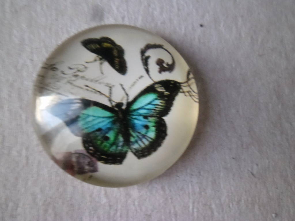 ce magnifique camée/cabochon en verre bombé de forme rond à motif papillon.