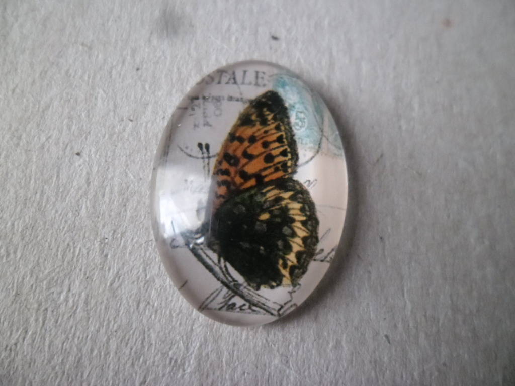 x 1 camée/cabochon vintage verre dome ovale motif papillon