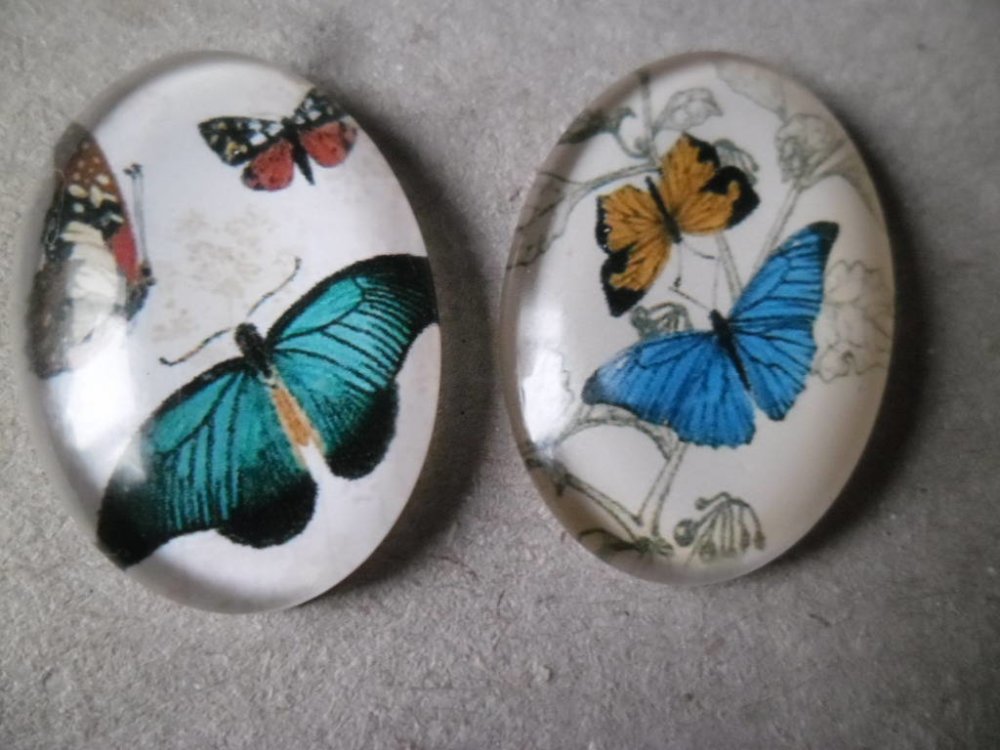 x 2 mixte camée/cabochon ovale verre dome motif papillon