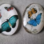 ce très beau lot de 2 mixte camée/cabochon de forme ovale en verre dome à motif papillon multicolore.