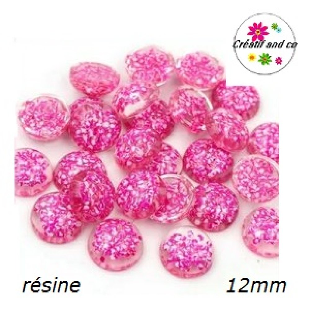 -16% X2 cabochons dômes translucide inclusion paillette rose résine 12mm Ajout au panier