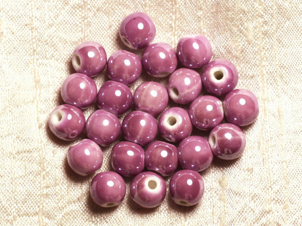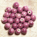 100pc - Perles Ceramique Porcelaine Boules Rondes 10mm Violet Rose Mauve