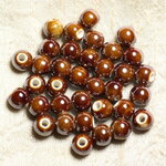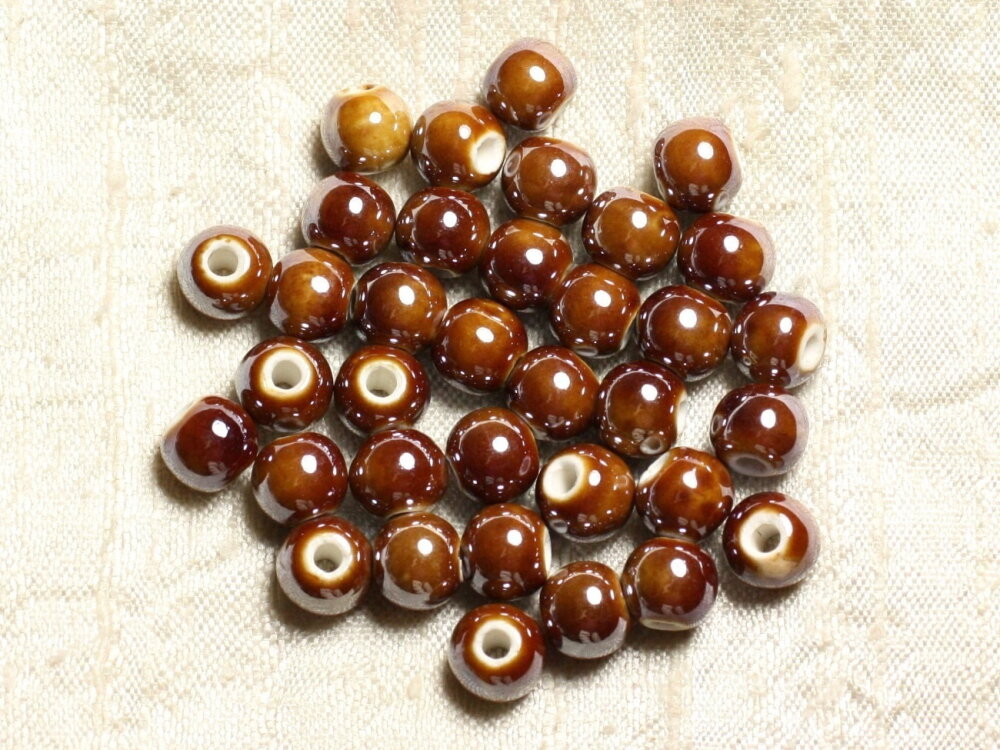 100pc - Perles Porcelaine Céramique Boules 8mm Marron Ocre Noisette