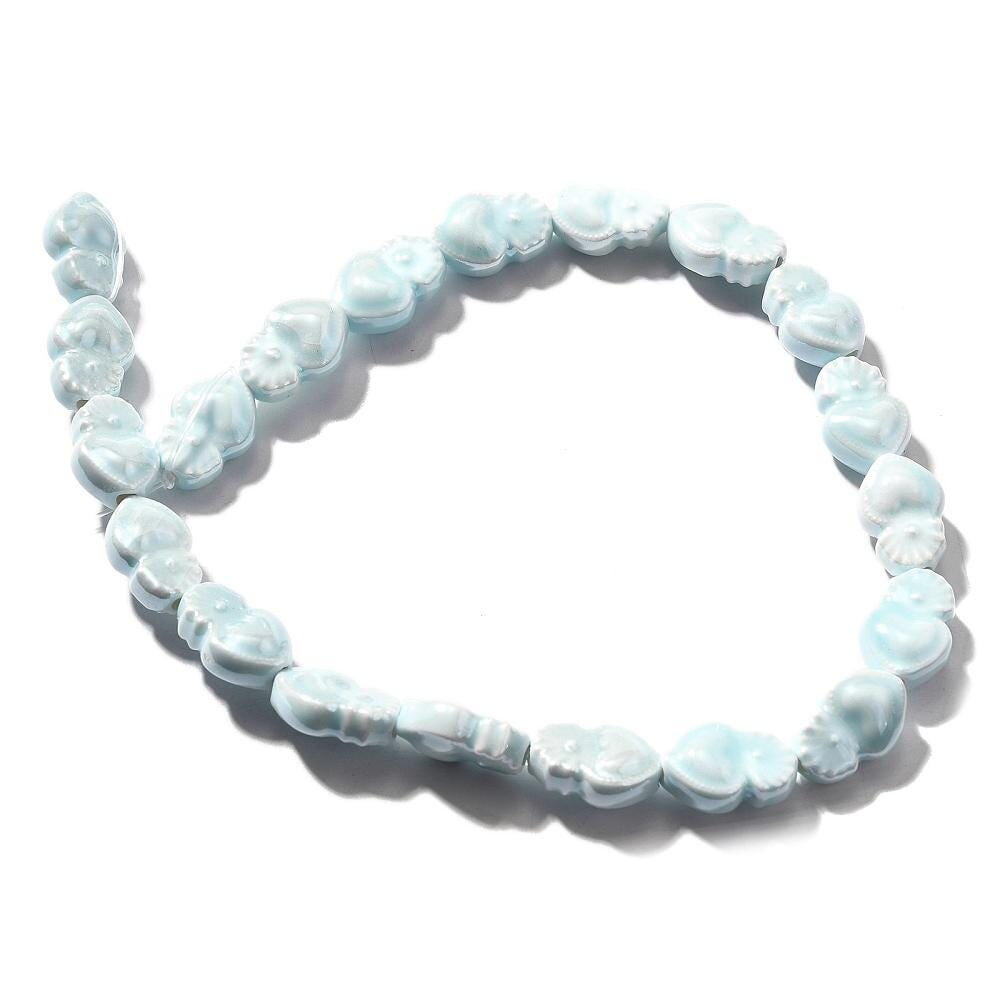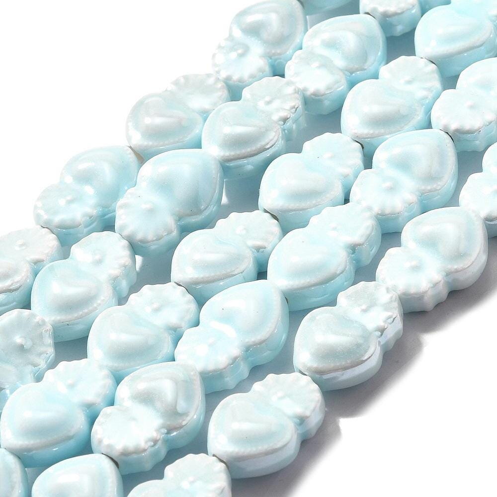 2 Perles cœur ex voto porcelaine bleu cyan clair 15 x 10,5 mm perle céramique cœur flamboyant