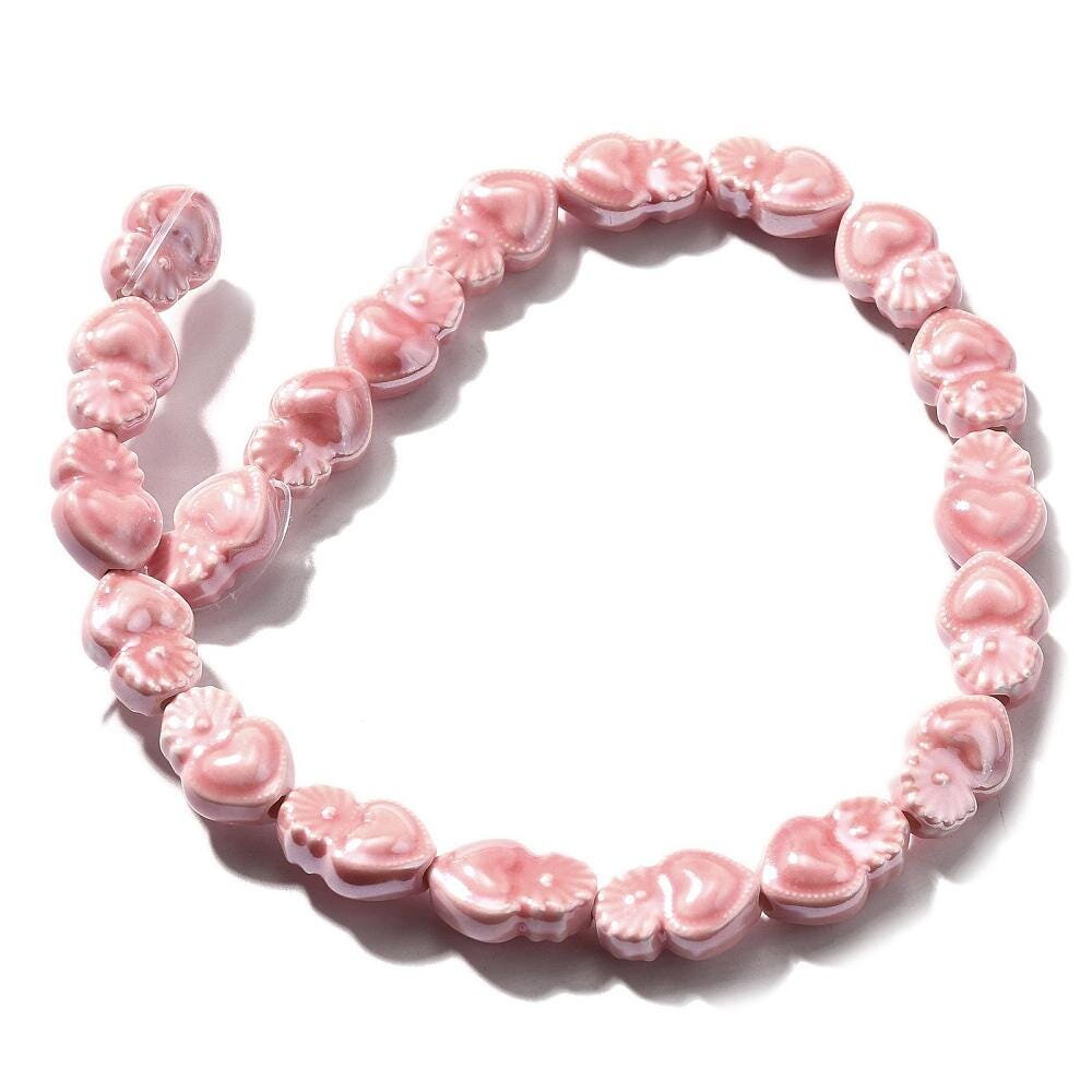 2 Perles cœur ex voto porcelaine rose 15 x 10,5 mm perle céramique cœur flamboyant