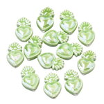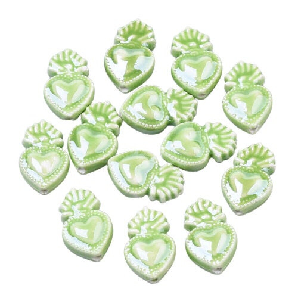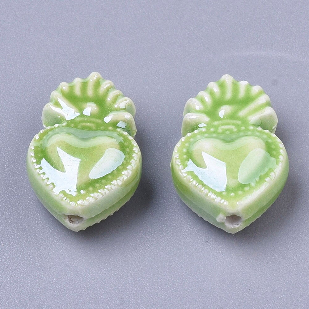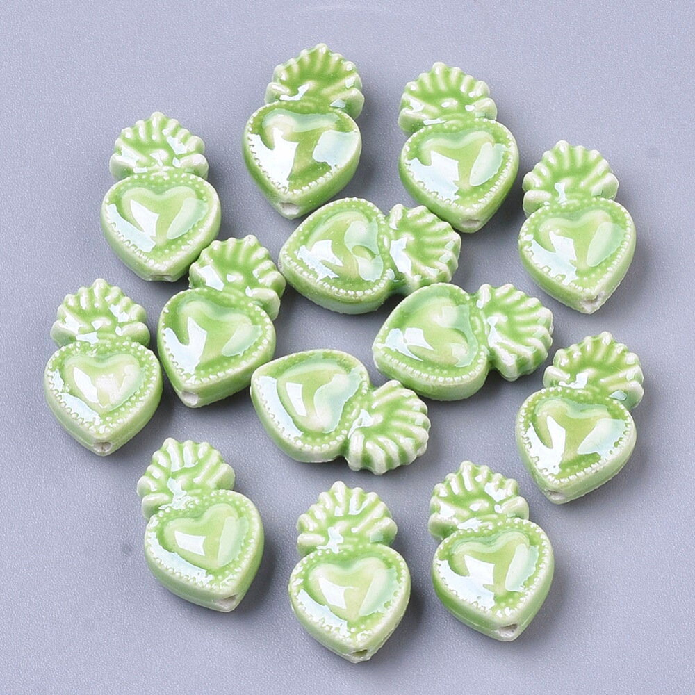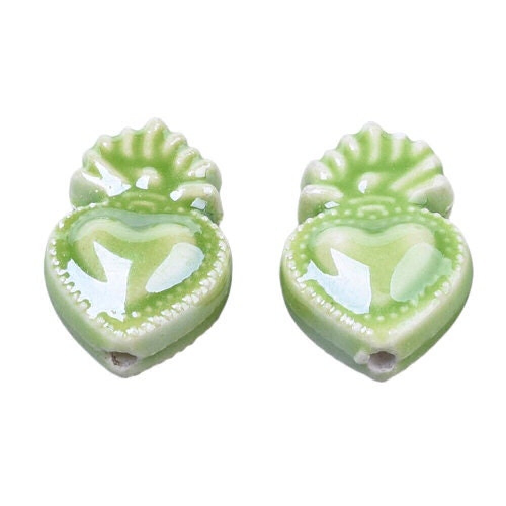 2 Perles Cœur ex voto porcelaine vert irisé 16 x 10 mm perle céramique cœur flamboyant