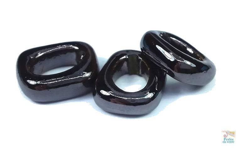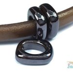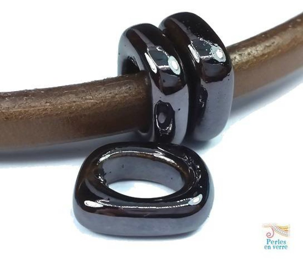 Deux perles noires en céramique émaillée pour cuir Regaliz 6x11mm.