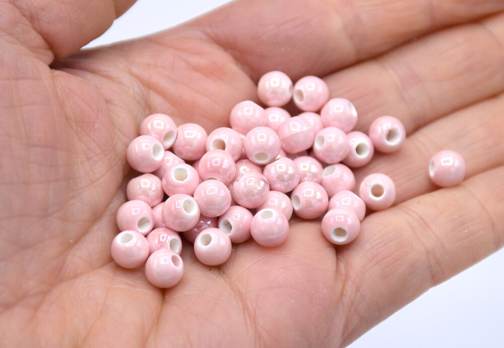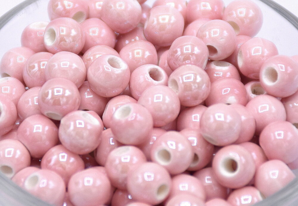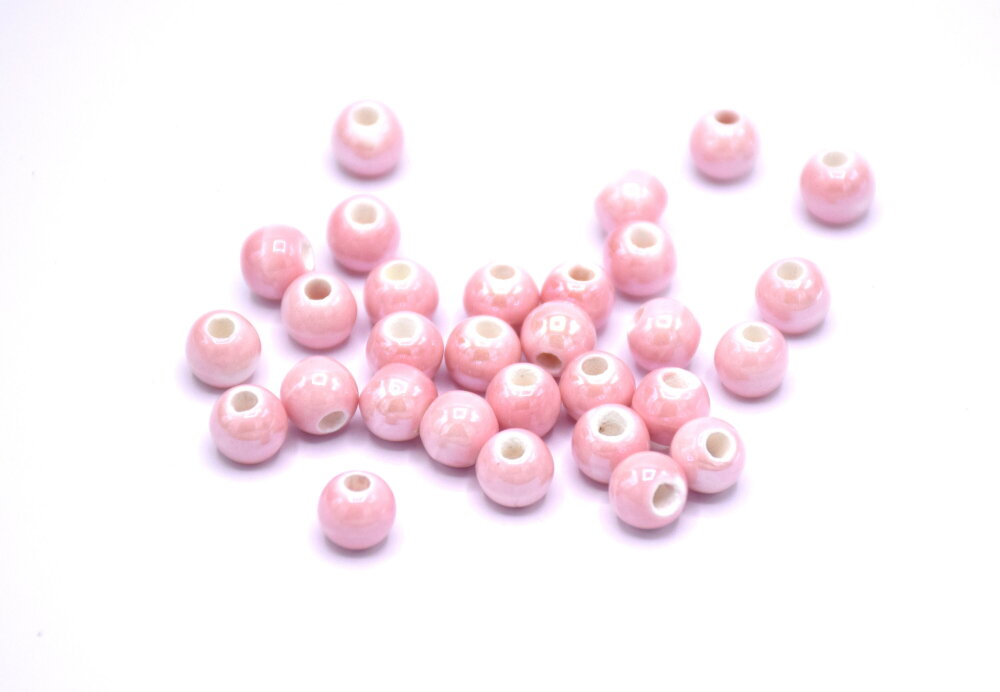 Perles en porcelaine manuelles, fantaisie porcelaine émaillée antique ,ronde, rose.