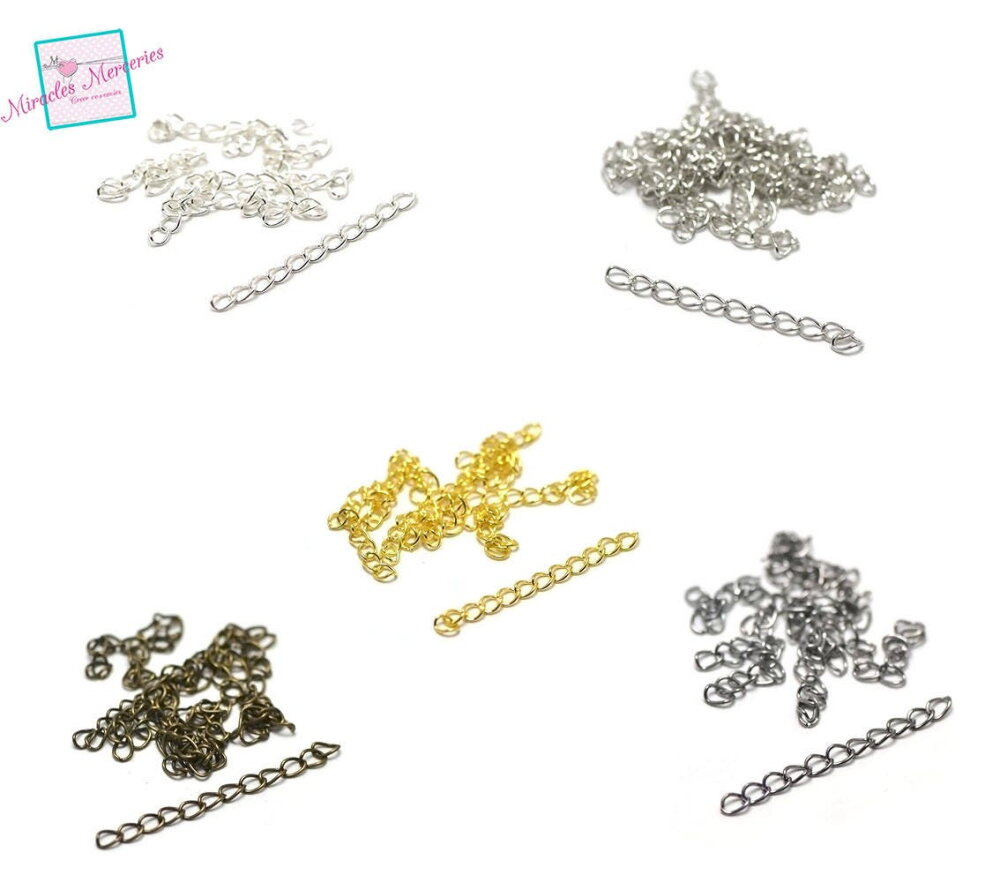 20 chaînettes de rallonge 50 mm,5 couleurs au choix ou lot de 5x20 pcs par couleurs
