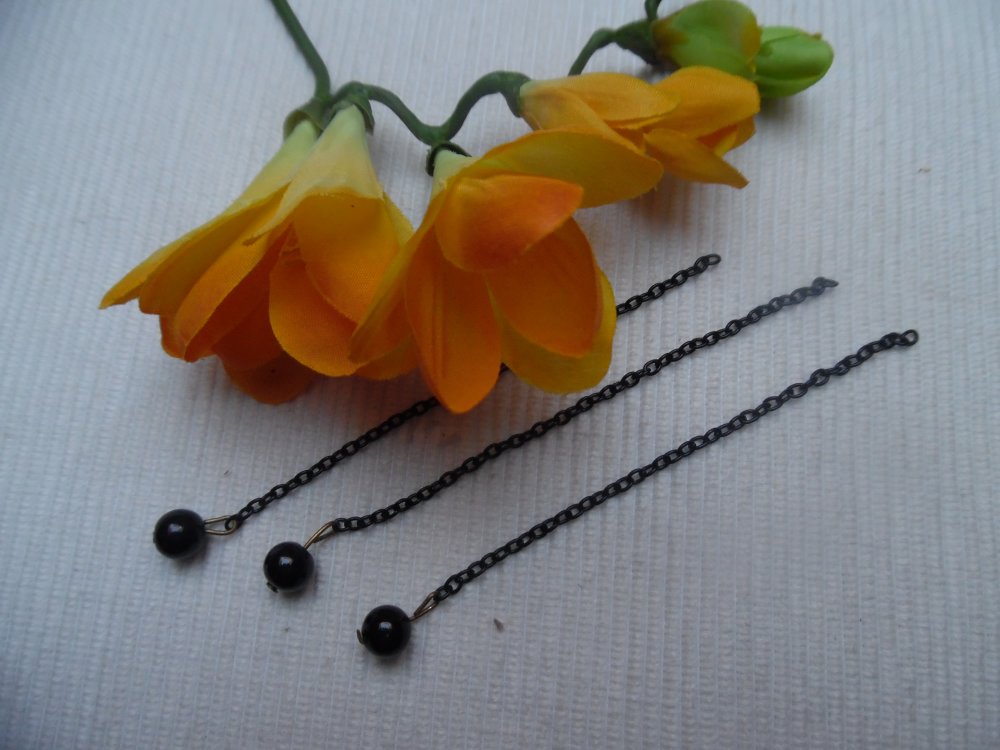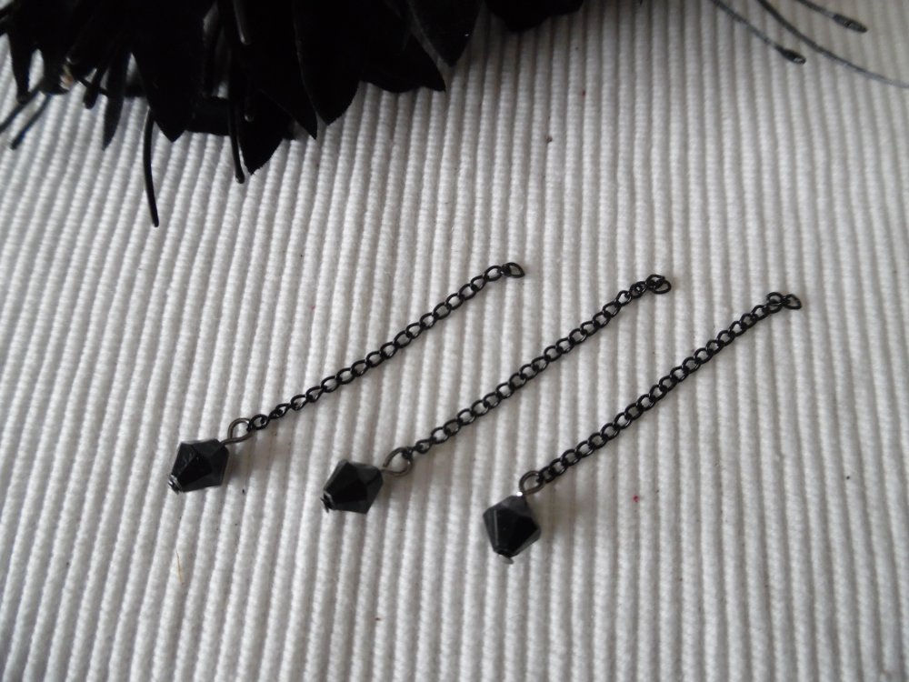 5 gouttes noire 16x6mm sur chainette noire 3x2mmx6.5cm acrylique