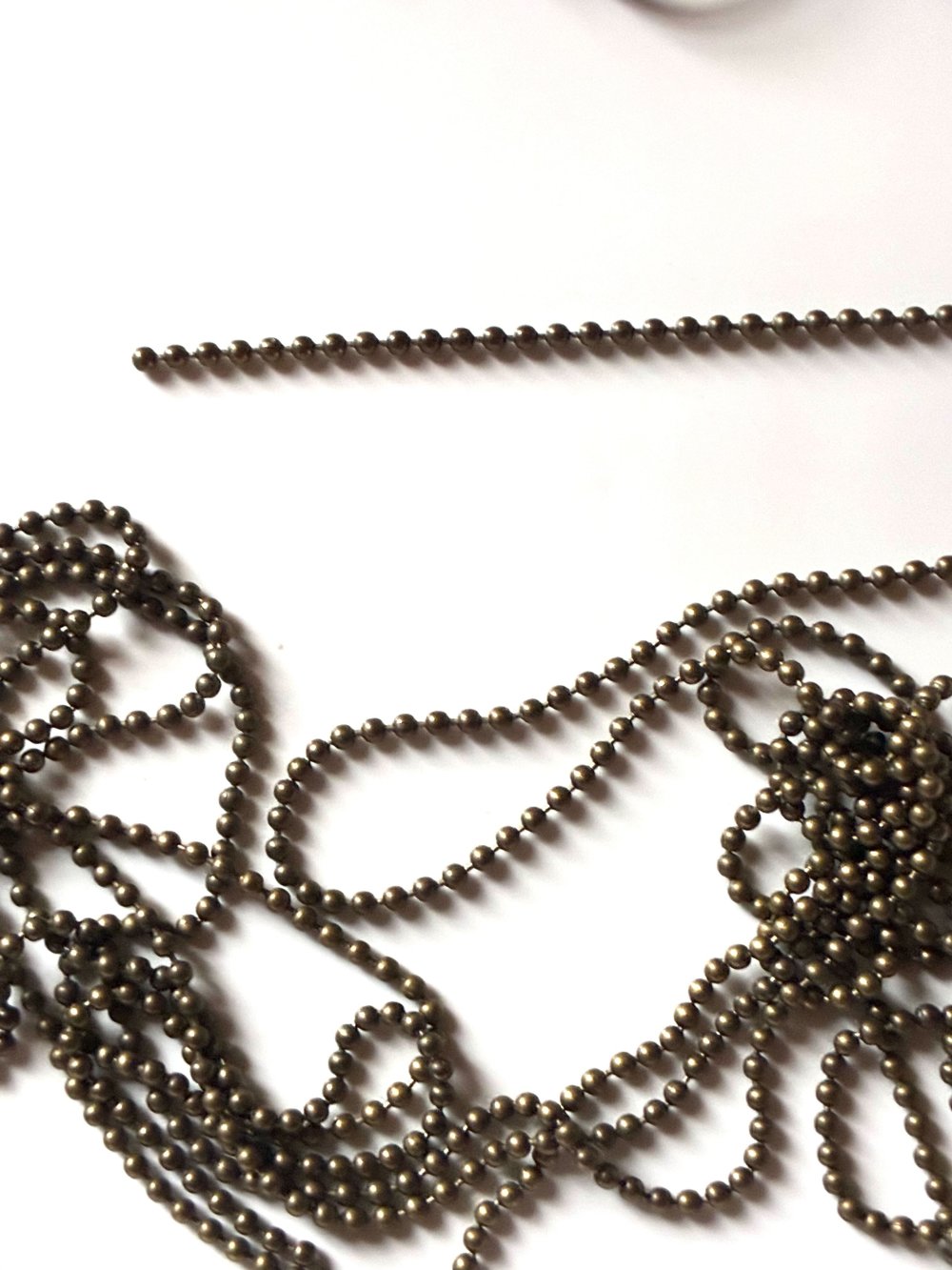 Cette chaîne à billes (les billes mesurent 1mm) en bronze est très pratique pour des réalisations de colliers avec pendentifs