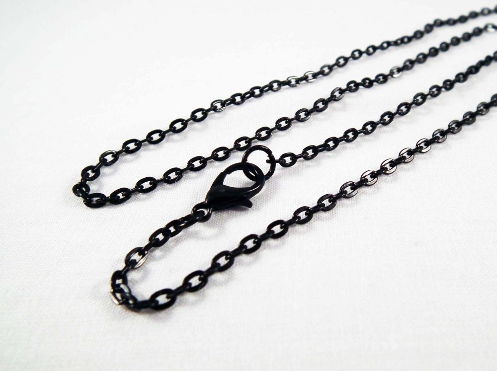 Collier à chaîne Noir Mailles Forçat Ovales 3.25mm X 2.25mm, avec fermoir à mousqueton, Longueur 45cm.