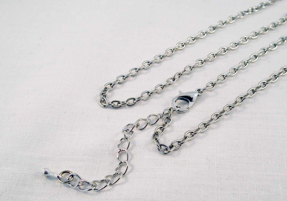 Collier à chaîne 46cm Maille Forçat Argent Mat Foncé avec fermoir à mousqueton et Mini breloque Goutte.