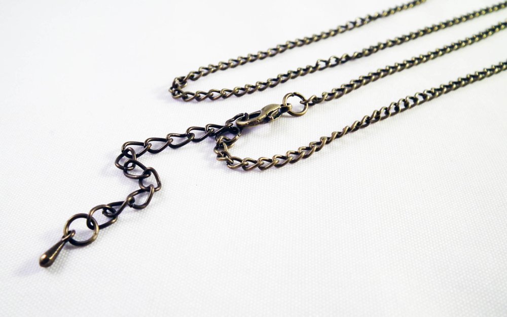 Collier à chaîne 58cm Bronze avec fermoir à mousqueton chaînette d'extension et mini breloque Goutte