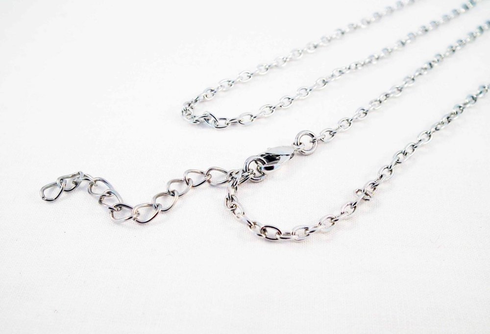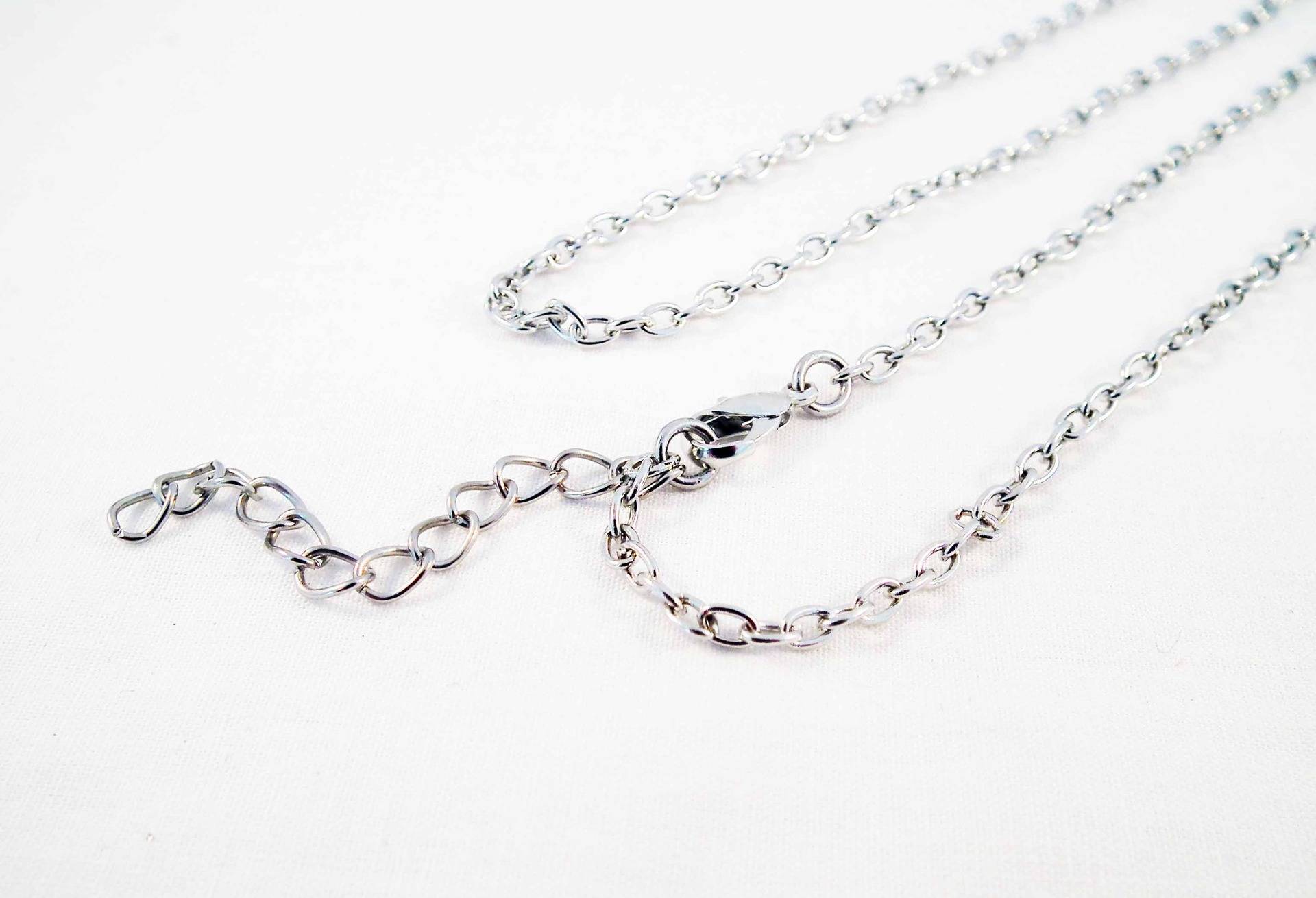 Collier à chaîne 60cm Argenté avec fermoir à mousqueton et chaînette d'extension.