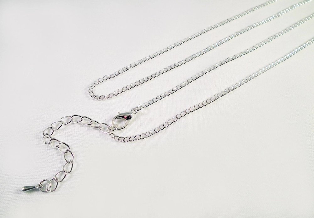 Collier à chaîne 62cm Argenté avec fermoir à mousqueton chaînette d'extension et mini breloque Goutte