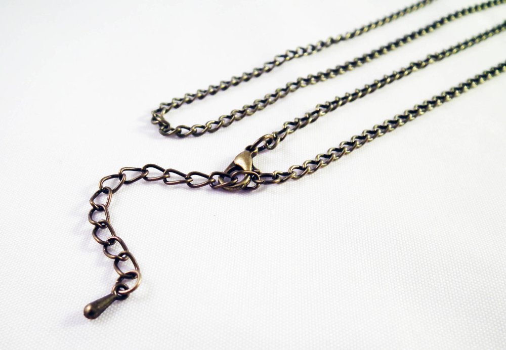 Collier à chaîne 72cm Bronze avec fermoir à mousqueton chaînette d'extension et mini breloque Goutte