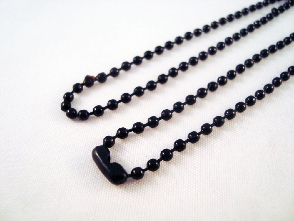 Collier à chaîne à Billes Noir 46cm avec fermoir, Longueur 46cm.