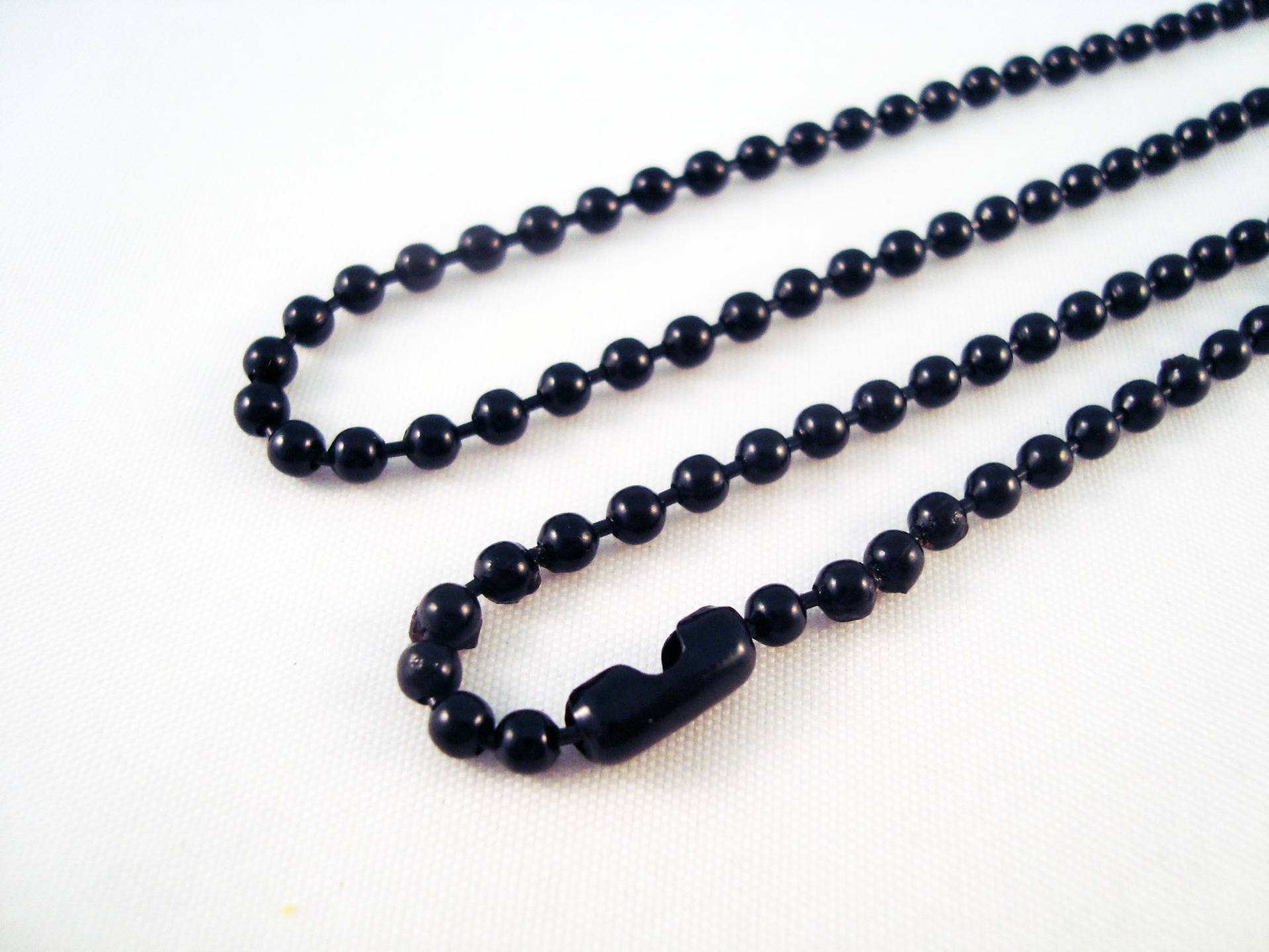 Collier à chaîne à Billes Noir 50cm avec fermoir, Longueur 50cm.