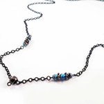 Long support Collier à chaîne Noire Connecteur Flocon GunMetal perles Abacus de Turquie uniques Teintes Bleu Marron et Bélière Gris foncé, Longueur 84cm.